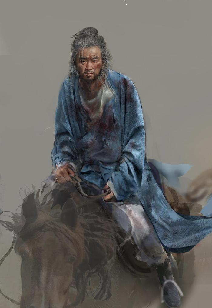 事实上,在该条微博留言下,大鹏还发出了主角李善德的设计稿,只见他衣衫褴褛,面色憔悴,身上和衣服上挂满了血渍,坐在一匹马上,双眼无光。