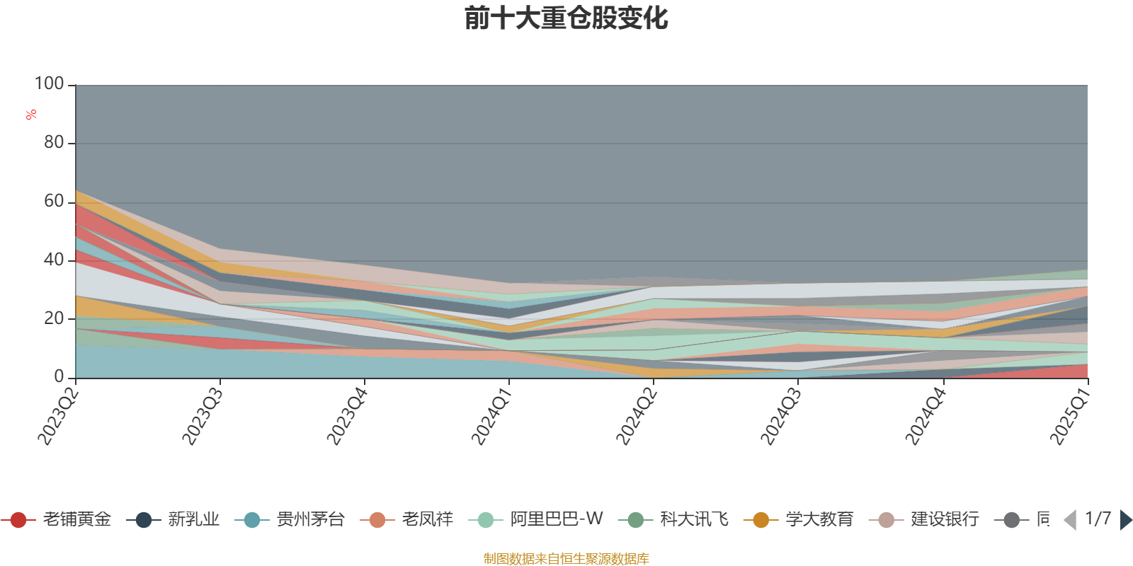 截至2025年一季度末,基金十大重仓股分别是泡泡玛特、老铺黄金、阿里巴巴-W、腾讯控股、比亚迪、科锐国际、招商银行、潮宏基、格力电器、美的集团。