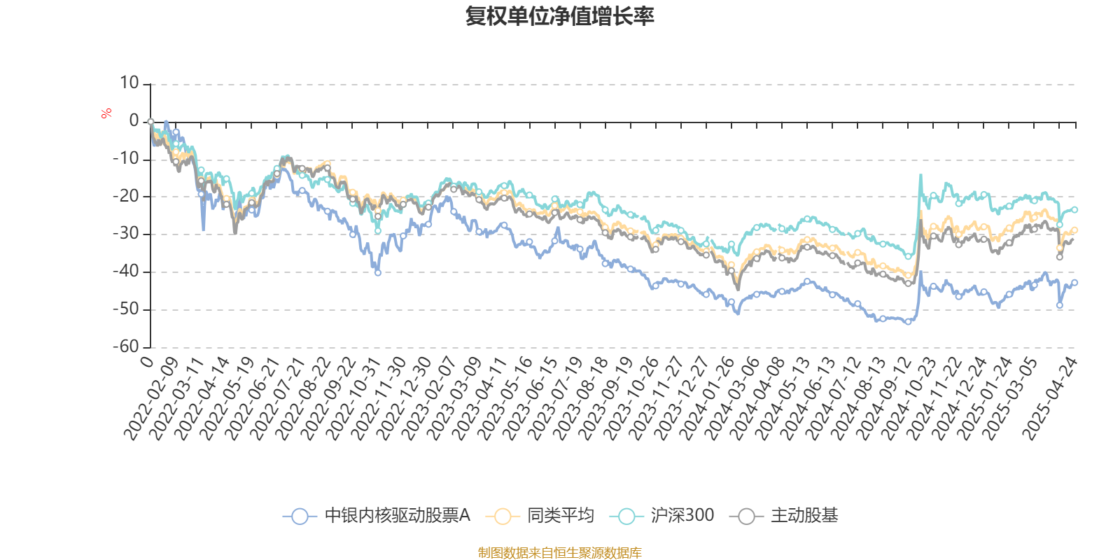截至4月24日,中银内核驱动股票A近三个月复权单位净值增长率为5.71%,位于同类可比基金24/166;近半年复权单位净值增长率为3.02%,位于同类可比基金55/166;近一年复权单位净值增长率为3.47%,位于同类可比基金115/165;近三年复权单位净值增长率为-24.39%,位于同类可比基金139/156。