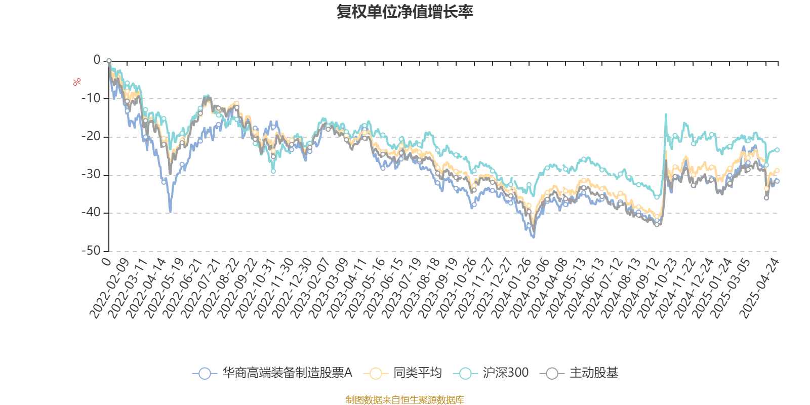 截至4月24日,华商高端装备制造股票A近三个月复权单位净值增长率为-2.23%,位于同类可比基金112/166;近半年复权单位净值增长率为-0.39%,位于同类可比基金82/166;近一年复权单位净值增长率为7.93%,位于同类可比基金87/165;近三年复权单位净值增长率为5.11%,位于同类可比基金49/156。