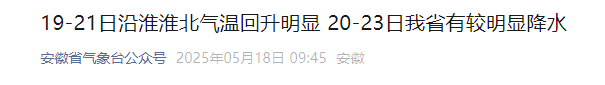 5月18日场外配资公司,安徽省气象台公众号发布未来一周天气预报。